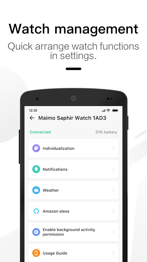 Maimo Fit можно использовать для управления настройками интеллектуальных устройств Maimo, такими как управление уведомлениями, замена циферблата, сортировка виджетов и другие.