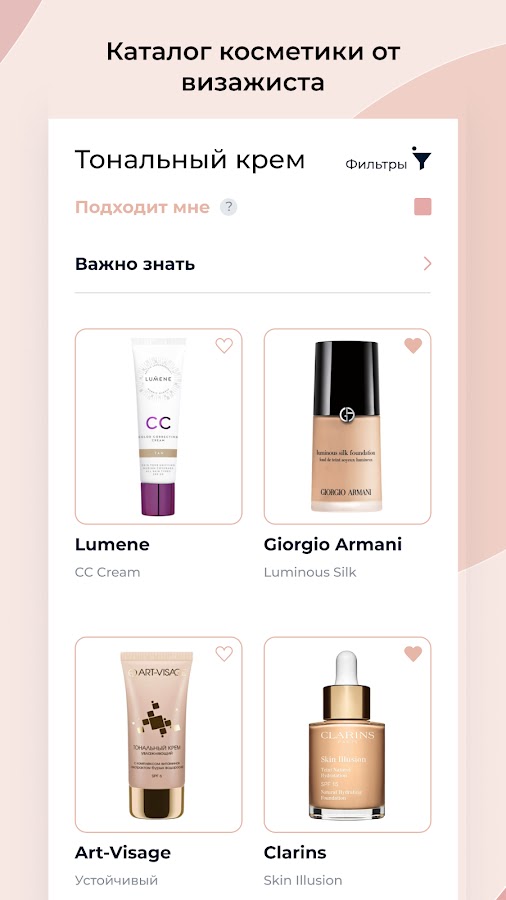 Внутри — подборка проверенной косметики: то, что используют профессионалы. Более 500 средств для разного бюджета и разных случаев. Всё сопровождается гайдами по подбору, сравнением цен и прямыми ссылками на магазины.