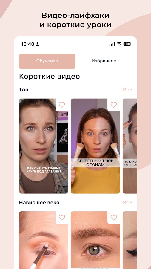 В приложении вас ждут уроки, пошаговые гайды и лайфхаки от профессионального визажиста.