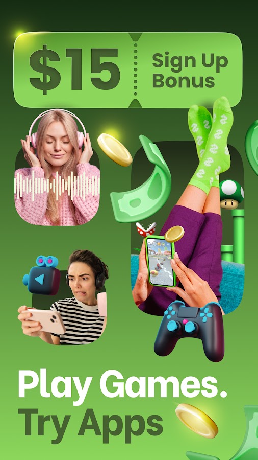 💰🎮📱 Зарабатывайте денежные вознаграждения, пробуя бесплатные игры и приложения, просматривая короткие видеоролики и участвуя в опросах!