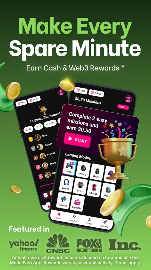Обменивайте заработанные вознаграждения на наличные или подарочные карты! Приложение Mode Earn позволяет вам играть и зарабатывать реальные деньги и вознаграждения, просто выполняя повседневные действия на мобильном устройстве.