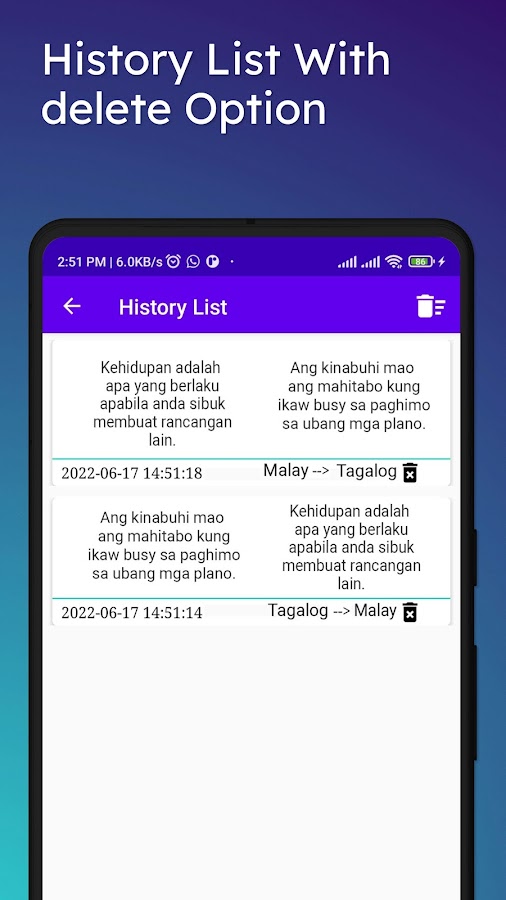 Малайско-тагальский переводчик для перевода текста, перевода слов, перевода абзацев, а также перевода полных предложений. Это приложение также используется для переводчика с малайского на тагальский и для перевода с тагальского на малайский также для слов, текста и полных предложений.