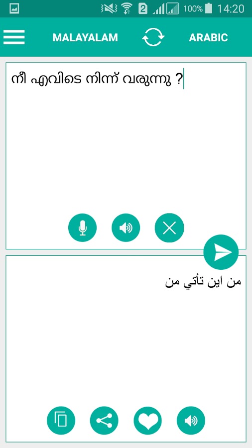 Бонусная функция — Изучите и освойте произношение, поскольку малаяламский арабский переводчик имеет встроенную аудиофункцию. Слушайте переведенный текст и удобно общайтесь с друзьями, подругами, парнями, членами семьи или туристами.