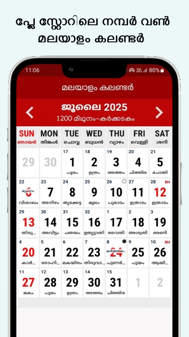 Приложение «Календарь малаялам 2026» — это полноценный календарь на 2026 год, доступный вам в цифровом формате для использования на мобильных устройствах Android. «Календарь малаялам 2026» — это не просто календарь на английском языке, но и календарь малаялам, Шакаваршам и Хиджра, объединенные в один.