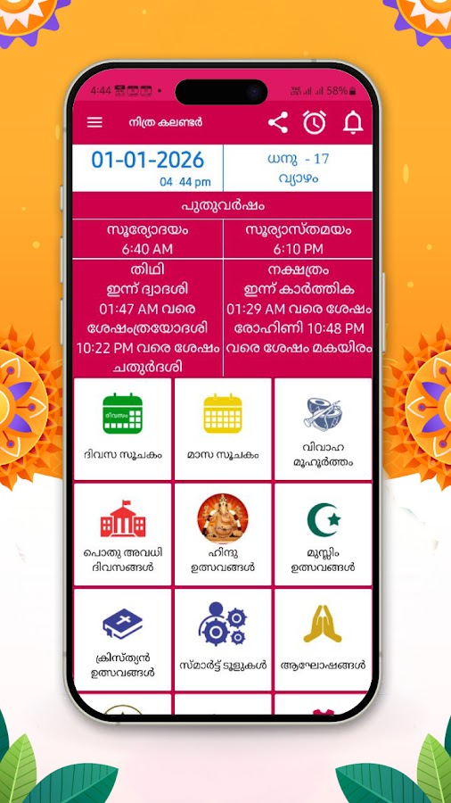 Календарь малаялам 2026 (മലയാളം കലണ്ടർ) – лучшее приложение для панчангама на малаялам