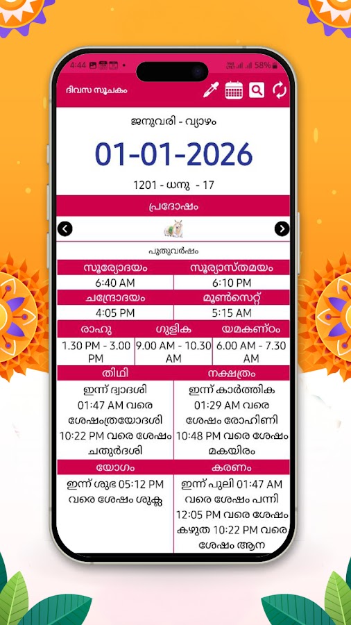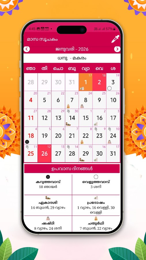 Откройте для себя богатство традиций малаялам и астрологические рекомендации с помощью «Календаря Малаялам на 2026 год» (മലയാളം കലണ്ടർ). Загрузите сейчас, чтобы прожить год с уверенностью, традициями и процветанием!..