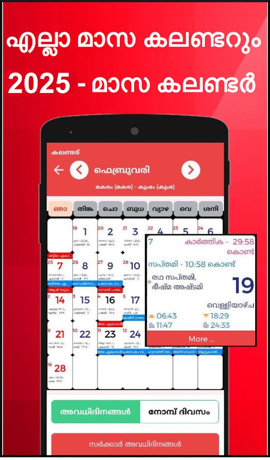 ✔ Полный подробный календарь на малаялам