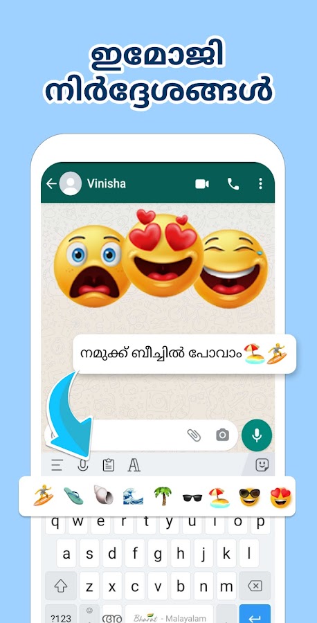 — Начните печатать на малаялам везде с малаяламской клавиатурой, всеми приложениями для социальных сетей и платформами для обмена сообщениями.