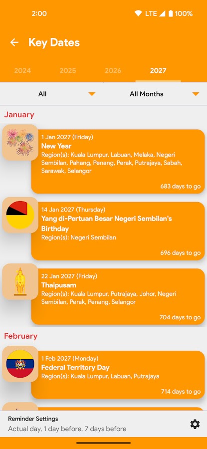 • Государственные праздники в Малайзии, фильтруемые по штатам