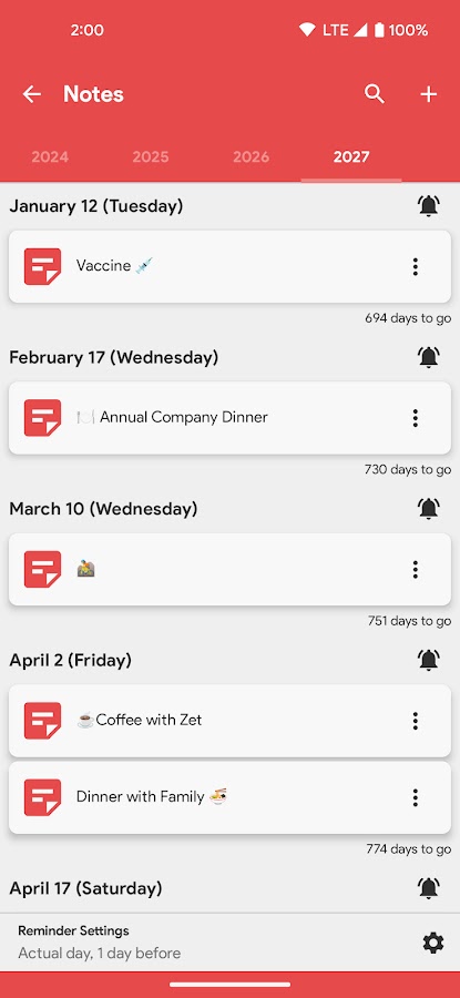• Добавление личных заметок непосредственно к датам календаря