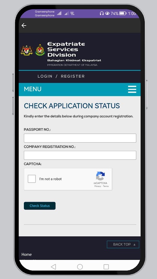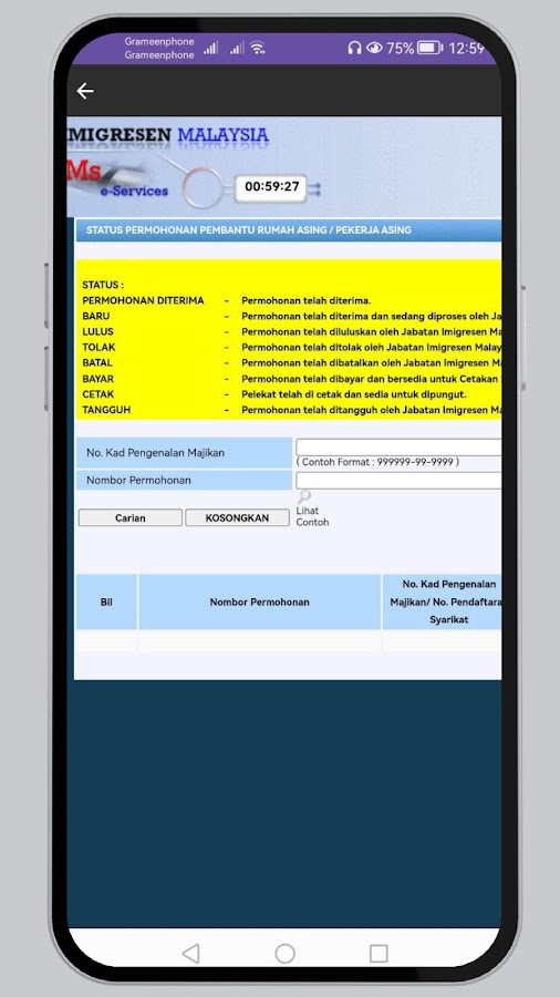 Представляем приложение Malaysia Visa Checker — ваш специальный инструмент для эффективной и быстрой проверки статуса визы. Путешествуйте по миру электронных виз Малайзии и виз для иностранных рабочих без особых усилий с помощью этого оптимизированного и простого в использовании приложения.