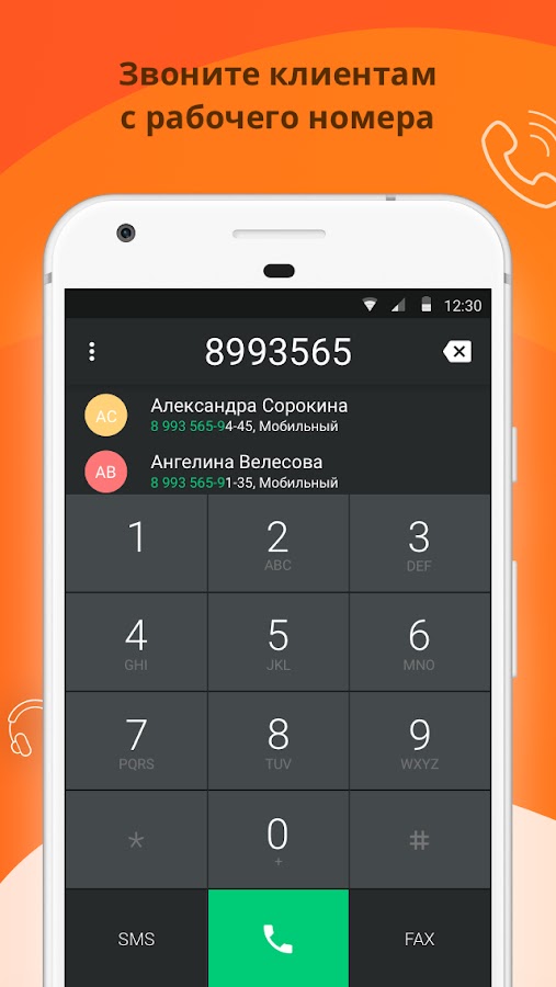 Для общения с клиентами: принимайте звонки, звоните и отправляйте СМС с рабочего номера, включайте запись разговора.