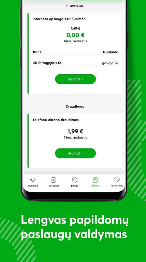 • lengvai peržiūrėti paskutinių 6 mėn. sąskaitas ir jas apmokėti;