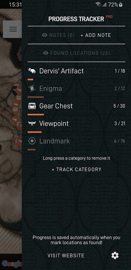 • Трекер прогресса — отмечайте найденные места и отслеживайте ход сбора ваших предметов коллекционирования.