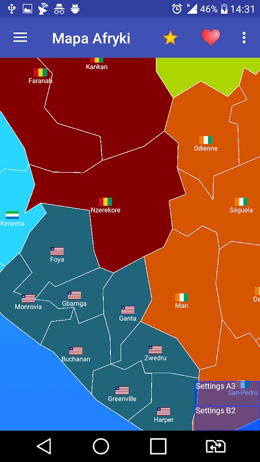 Приложение показывает карту Африки и Азии с более чем 700 провинциями в 75 странах. Редактируйте границы, экспериментируйте с территориями и изучайте географию легко и интересно.