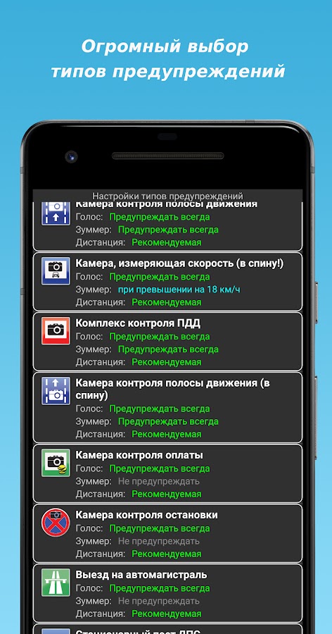 Программа использует базу предупреждений проекта MapCam info. Проект занимается созданием базы предупреждения с 2009 года. На данный момент, это самая полная и актуальная база по странам СНГ и не только. Доступны базы более чем 80 стран мира.