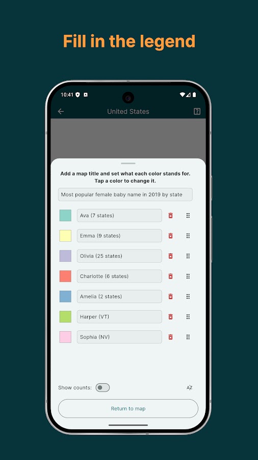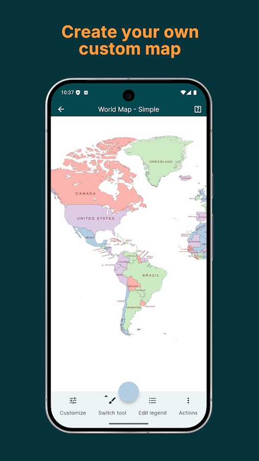 MapChart, сайт №1 для создания карт, теперь доступен как приложение! Идеально для всех, кто любит раскрашивать карты, изучать географию или исследовать исторические и фэнтезийные карты.