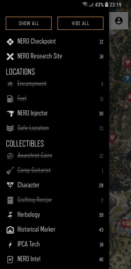 • Трекер прогресса — помечайте локации как найденные и отслеживайте прогресс ваших коллекционных предметов.