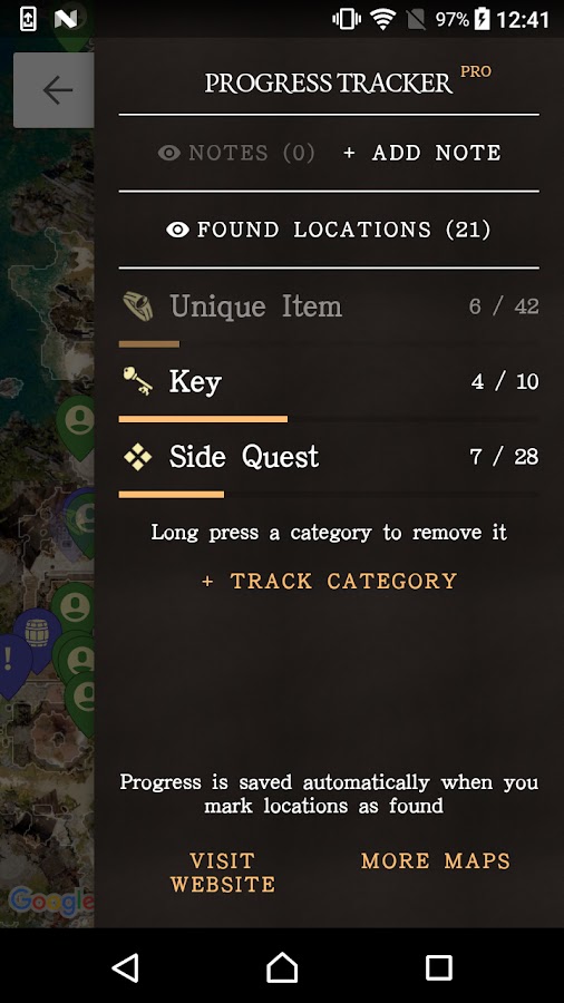 • Трекер прогресса — помечайте локации как найденные и отслеживайте прогресс ваших квестов и собираемых предметов.