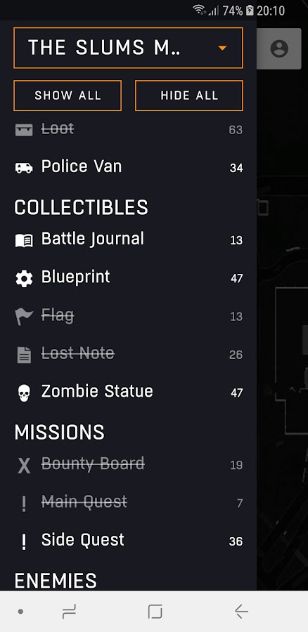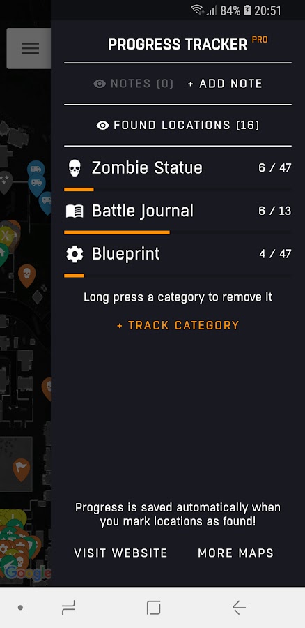 • Трекер прогресса — отмечайте локации как найденные и отслеживайте прогресс ваших коллекционных предметов.