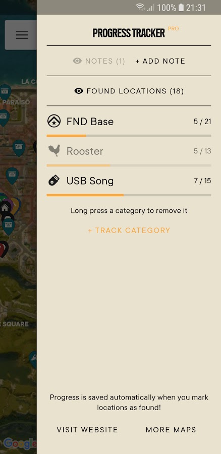 • Progress Tracker — помечайте локации как найденные и отслеживайте прогресс ваших коллекционных предметов.