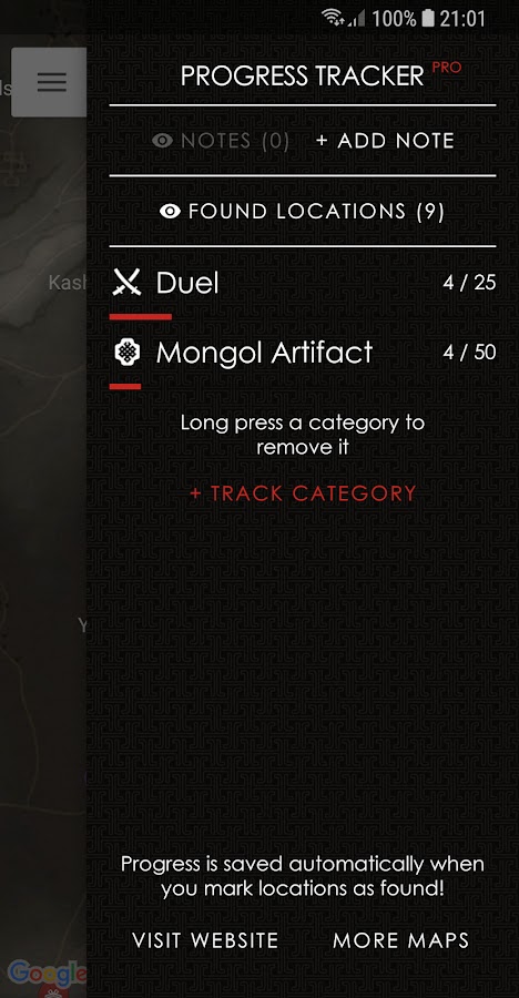 • Трекер прогресса — помечайте локации как найденные и отслеживайте прогресс ваших коллекционных предметов.
