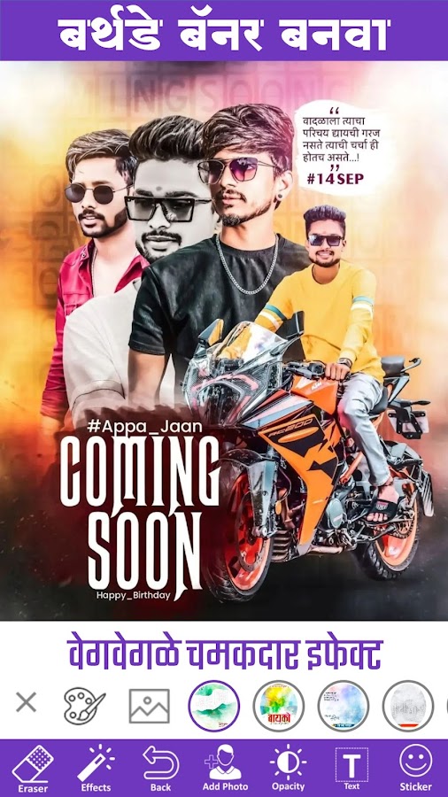 Приложение Marathi Birthday Banner Maker — лучшее приложение для редактирования фотографий с пожеланиями дня рождения.
