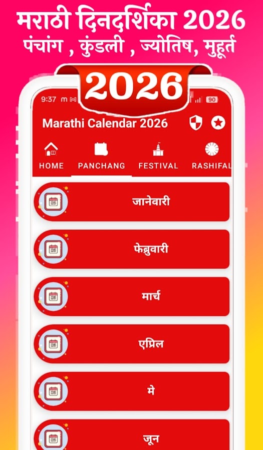 Marathi Calendar 2026 — मराठी