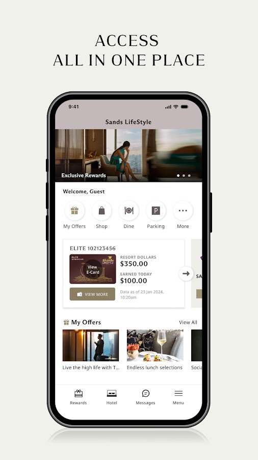 Получайте последние предложения и получайте доступ к своей учетной записи Sands Rewards в любое время и в любом месте.