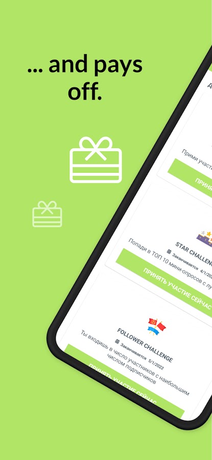 За каждый завершённый опрос, игру или задание вы получаете бонусные очки. Эти очки можно обменять на: