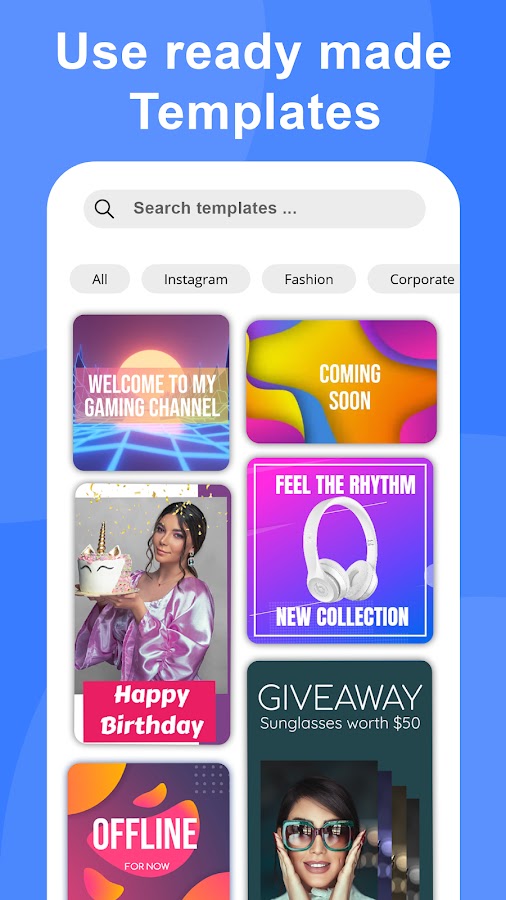 Создание видео очень просто с этим создателем видео для социальных сетей. Создавайте короткие видеоролики, занимательные истории в Instagram, посты, ролики, чтобы увеличить количество подписчиков и статус WhatsApp с помощью брендинга.