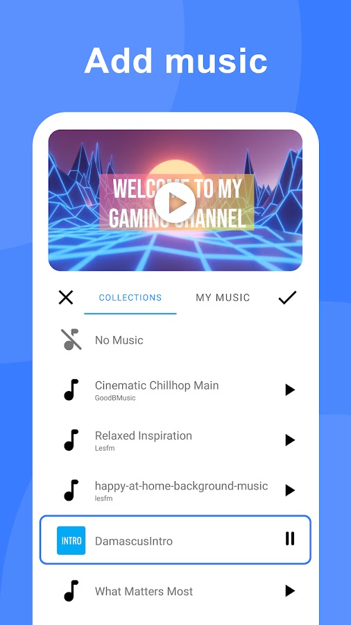 3. Добавьте свою собственную музыку, обрежьте аудио песню для синхронизации с фоновым видео.