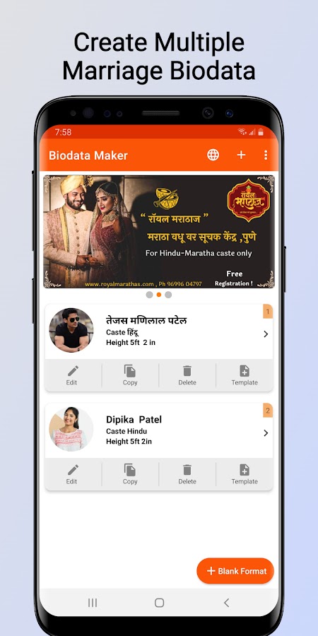 Вы можете легко создать биоданные о браке с помощью приложения Marriage Bio-data Generator and Maker.