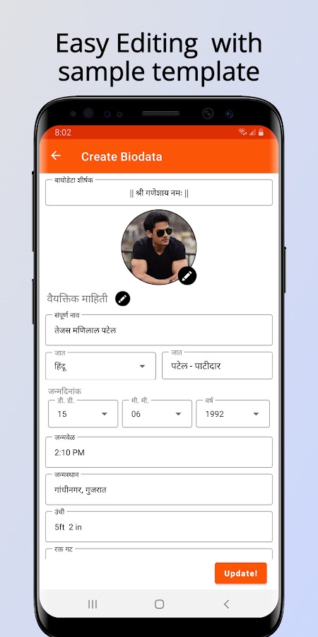 Приложение Marriage Bio-data Maker позволяет создать биографические данные для брака онлайн всего за 2 минуты и загрузить их в виде изображения.