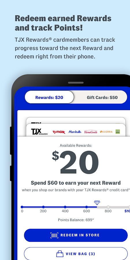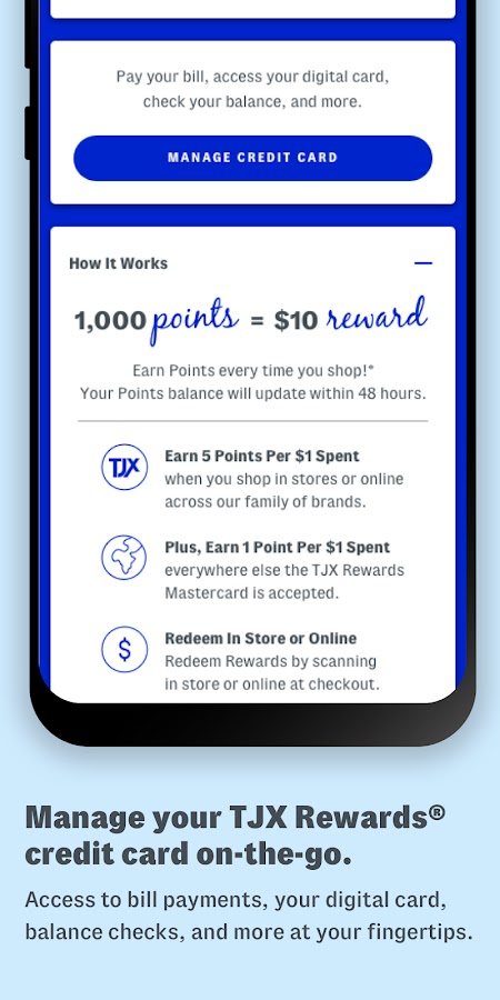 — Управляйте своей учетной записью кредитной карты TJX Rewards на ходу.