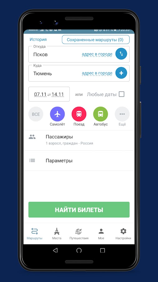 Приложение Маршруты.ру помогает экономить время при планировании поездок и находит самые выгодные билеты, сравнивая поезда, самолеты и автобусы.