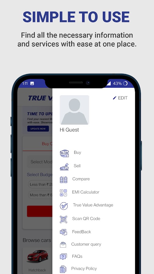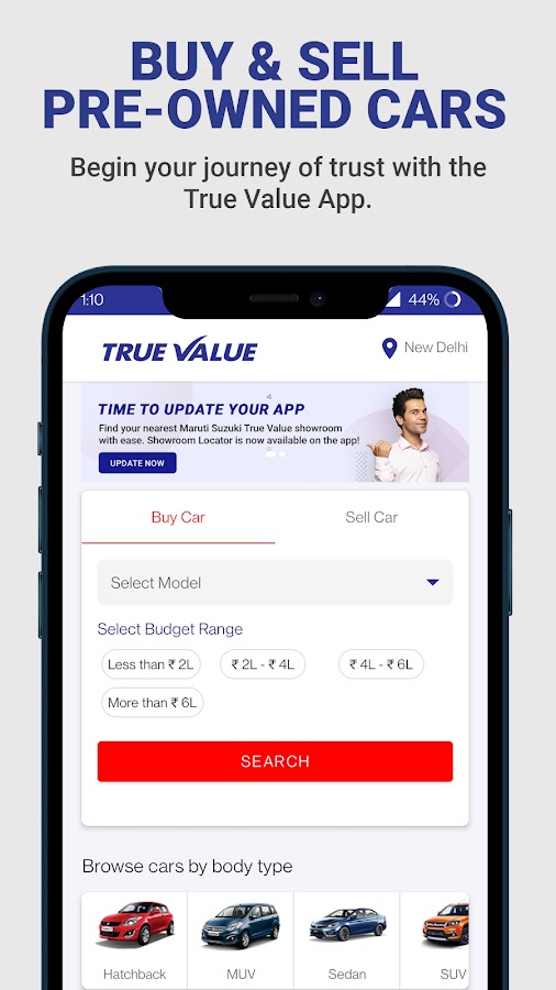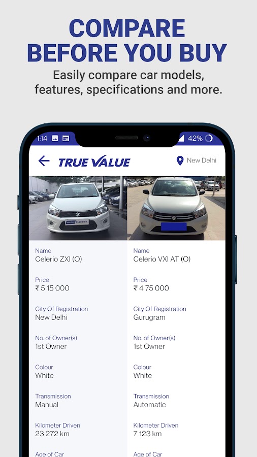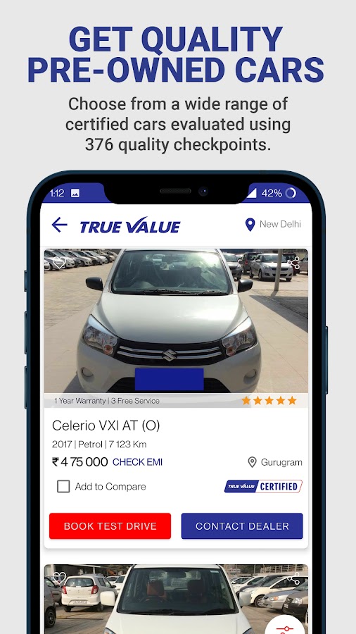 — Исследуйте инвентарь: ищите идеальный подержанный автомобиль в Интернете, так как приложение также позволяет вам изучить инвентарь доступных подержанных автомобилей для продажи в Maruti Suzuki True Value.