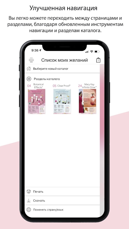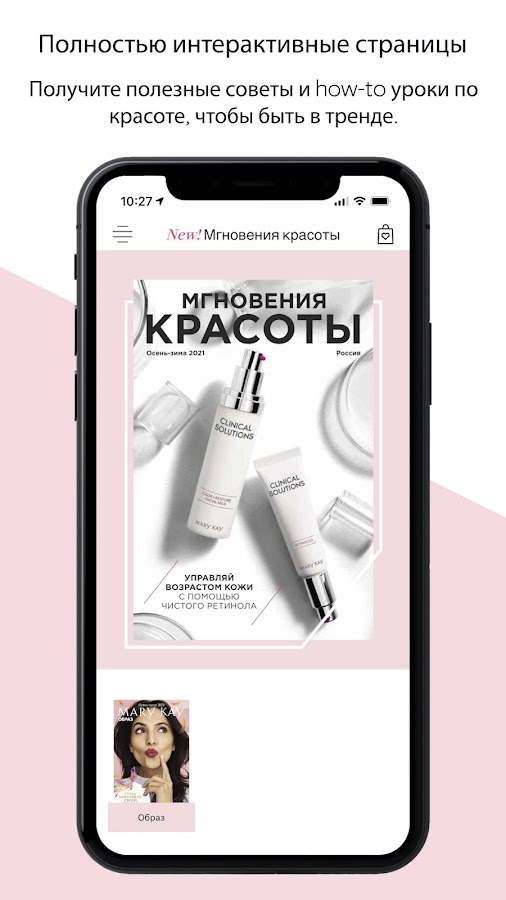 Каталоги оживают, благодаря удобному заказу продукции, видеороликам, спискам желаний, которыми можно поделиться, виртуальному макияжу с дополненной реальностью и многому другому! Представляем совершенно новый интерактивный каталог Mary Kay® — электронный каталог с интерактивными элементами.