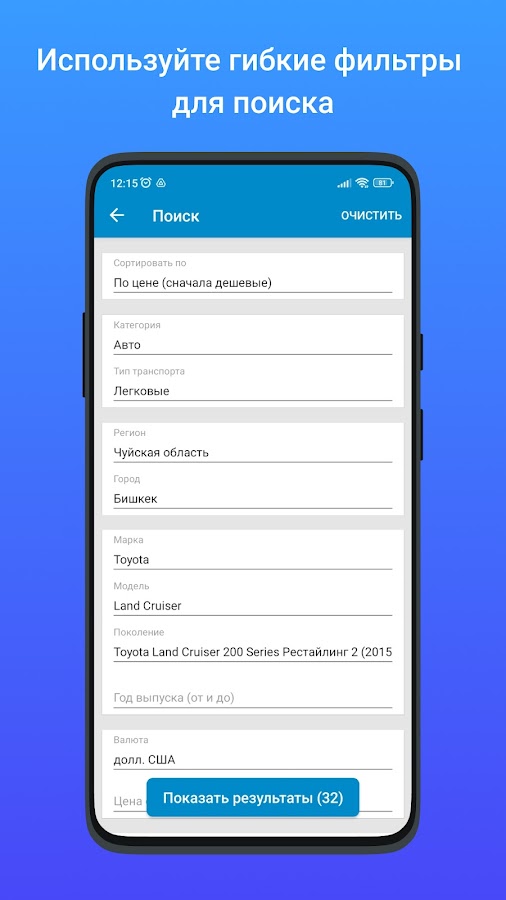 Приложение Mashina.kg имеет интуитивно понятный интерфейс и обладает самыми эффективными фильтрами поиска, не имеющими аналогов на рынке Кыргызстана!
