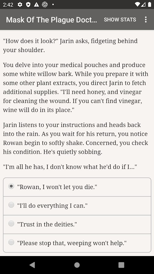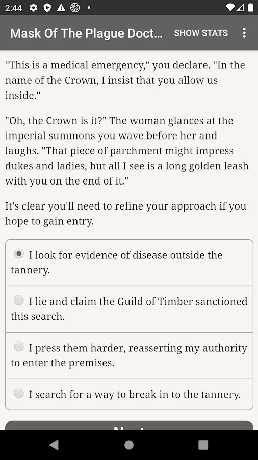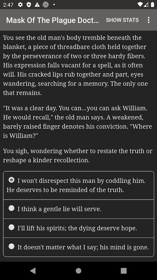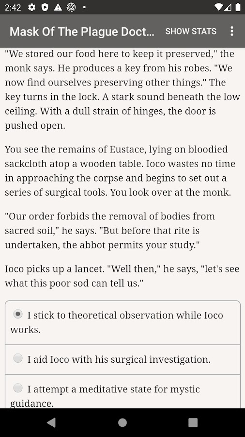 «Маска чумного доктора» — интерактивный роман Питера Пэрриша объемом 410 000 слов, в котором ваш выбор управляет историей. Он полностью основан на тексте, без графики или звуковых эффектов и подпитывается огромной, неудержимой силой вашего воображения.