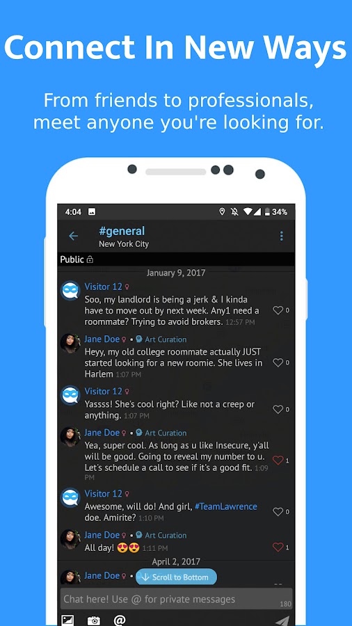 — Если вам не нравится обмен сообщениями с привязкой к месту, вернитесь к стандартному обмену сообщениями и начните общение с людьми, которых вы знаете из любой точки мира.