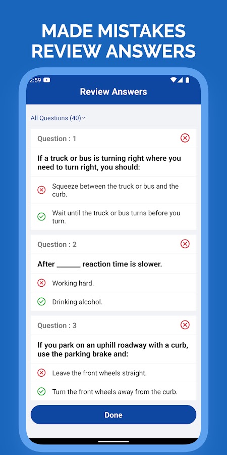 * Охватываются все типы лицензий: приложение содержит практические вопросы для получения водительских прав на автомобили, мотоциклы и коммерческие автомобили — CDL Prep.