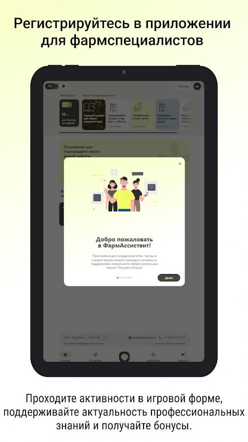 В одном приложении собраны вебинары, обучающие презентации и игры, тесты, задания, новости, полезные статьи. Прозрачная простая программа лояльности фармспециалистов – мотивация сотрудников и эффективный инструмент развития аптечного бизнеса.
