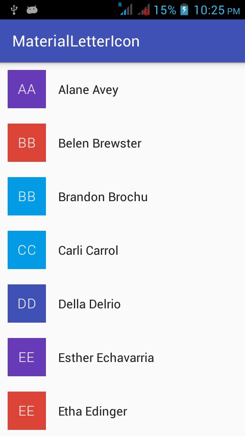 Материал Icon Library является демо-реализация ImageLetterIcon библиотеки.