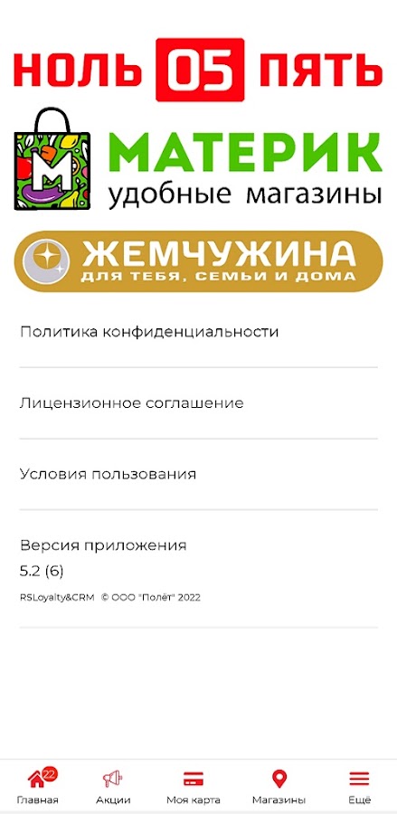 Мобильное приложение сети магазинов «МАТЕРИК», «НОЛЬ ПЯТЬ», «ЖЕМЧУЖИНА»