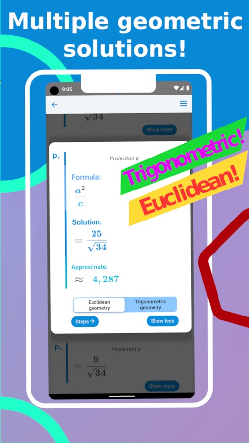 📟MathAI — это простой калькулятор, использующий тригонометрические функции, теорему Пифагора и теорему Фалеса. MathAI также является пошаговым геометрическим калькулятором, который сразу вычисляет необходимые значения и при необходимости подскажет, какие данные необходимо ввести, чтобы расчеты имели математический и геометрический смысл.
