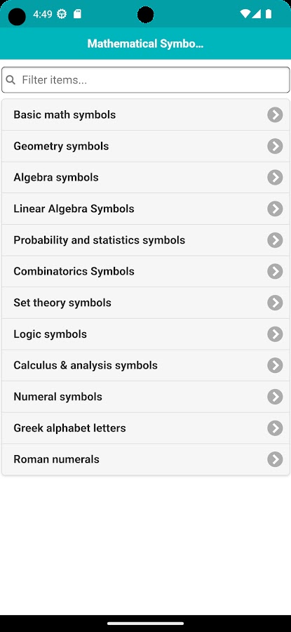 Скачайте приложение Mathematical Symbols для Android бесплатно - последняя версия (1.7) уже доступна для установки на ваш телефон или планшет.