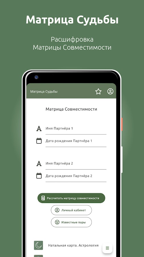 Приложение для расчета матрицы судьбы, матрицы совместимости и детской матрицы судьбы предназначено для тех, кто верит в нумерологию и хочет получить практическую пользу от знания системы судьбоносных влияний.