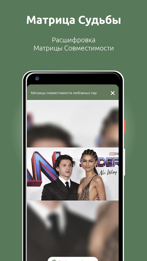 Матрица совместимости – это расшифровка судьбы двух людей, которая определяет, насколько они совместимы друг с другом в долгосрочной перспективе. Для получения матрицы совместимости приложение запрашивает данные о двух людях: их даты рождения. После этого приложение рассчитывает совместимость двух людей на основании сходств и различий в их судьбах.