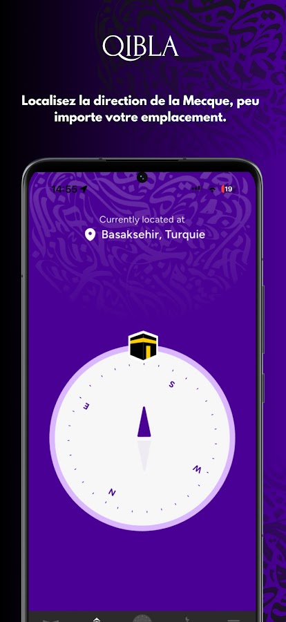 Кибла: компас Киблы для быстрого определения направления на Мекку.